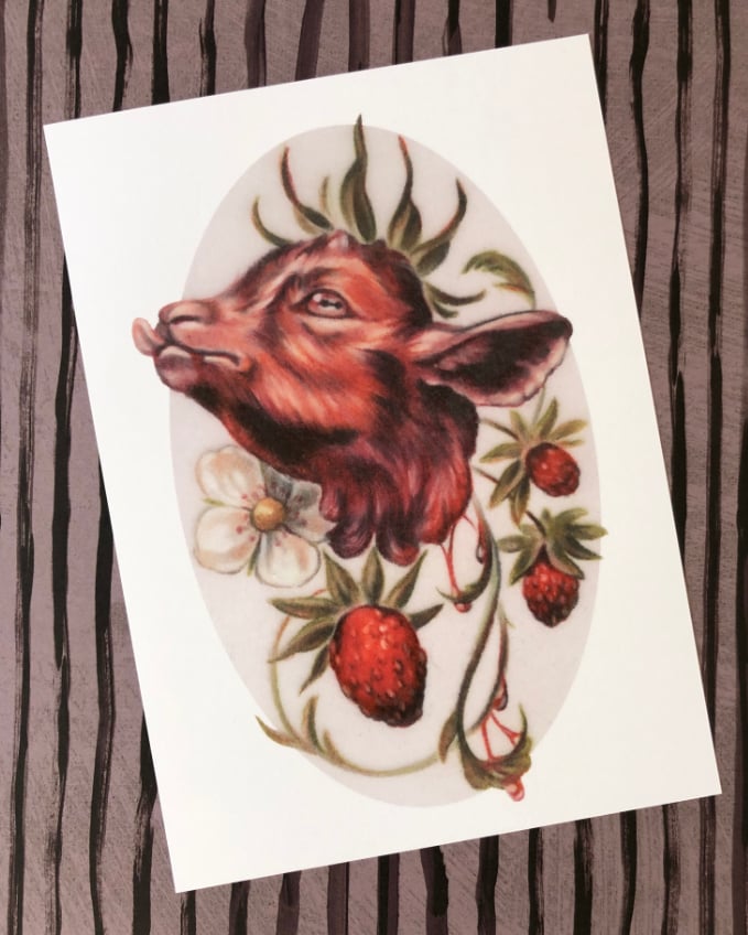 This is an 5" x 7" print on 100lb uncoated cardstock. Your print is signed and stamped on the back, and will ship in an acid-free cellophane sleeve for added protection.