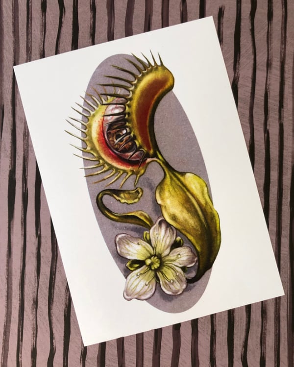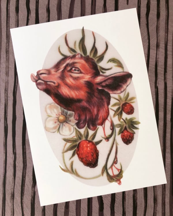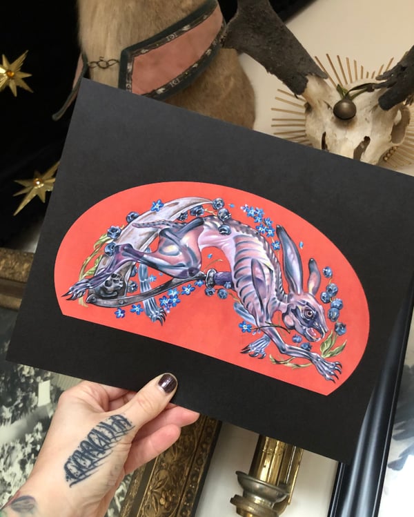 This is a 5" x 7" print on 100lb uncoated cardstock. Your print is signed and stamped on the back, and will ship in an acid-free cellophane sleeve for added protection.